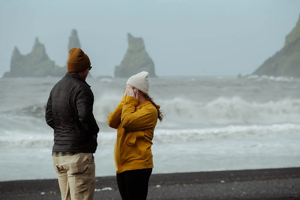 Black sand beach proposal in Iceland | Adam & Carrie